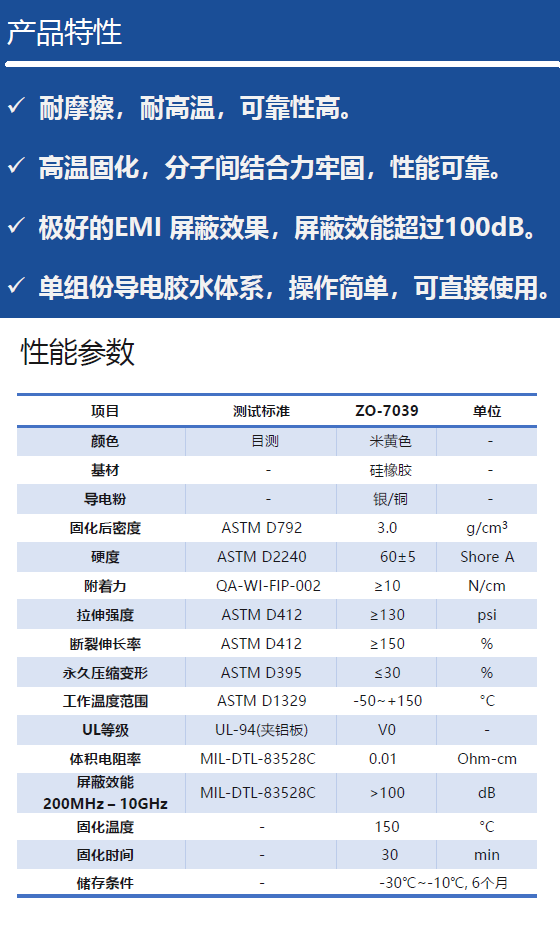 ZO-7039 是一款以銀包銅填充單組份硅彈體形式的高溫硫化導(dǎo)電膠水,可適用于FIP 現(xiàn)場成型工藝,用于精密點膠機進(jìn)行點膠后形成EMI 導(dǎo)電襯墊。ZO-7039 具有良好的壓縮性和優(yōu)異的導(dǎo)電性,且在各種金屬及塑膠表面有著很好的粘接性,可應(yīng)用于電信基站、光模塊、汽車電子、汽車?yán)走_(dá)、手持終端和消費電子EMI 點膠成型。